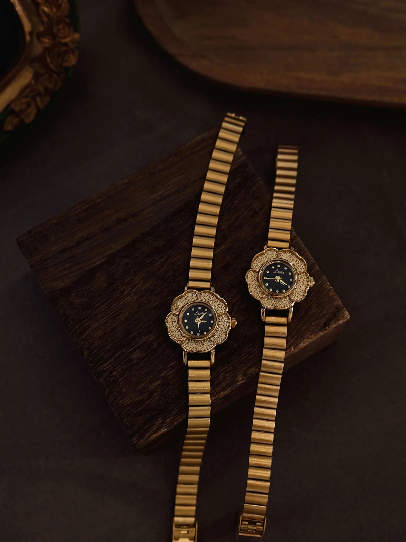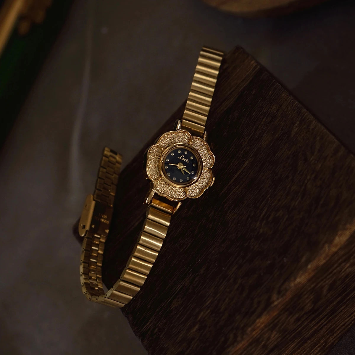 1 Piece of New French Retro Camellia Gold Small Dial Women's Watch, Fashionable, Simple, Luxurious, Elegant, Compact and Waterproof Women's Quartz Watch, Stainless Steel Strap, Solid Color and Durable, Suitable for Daily Wear