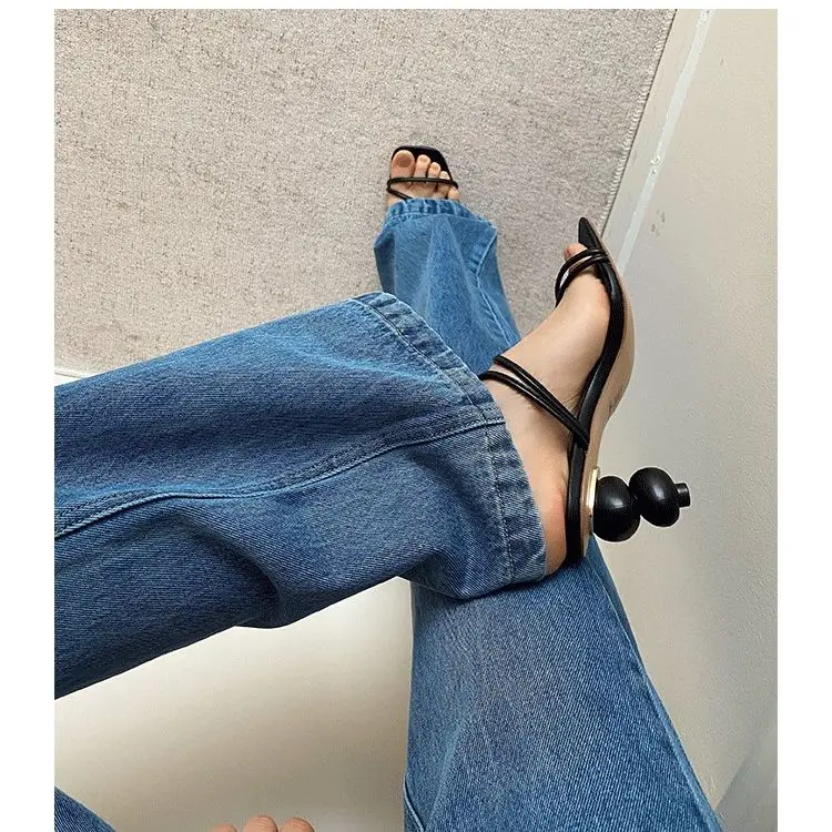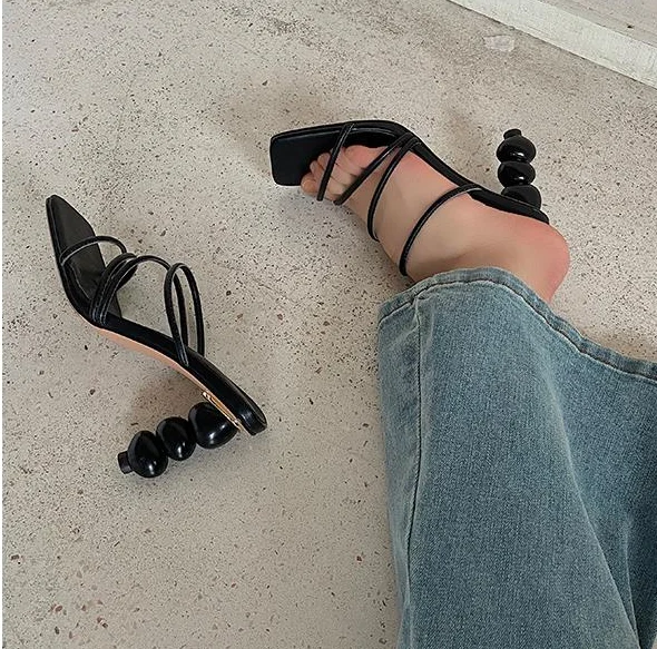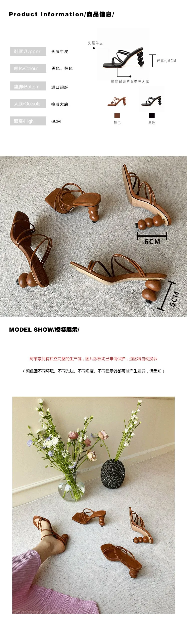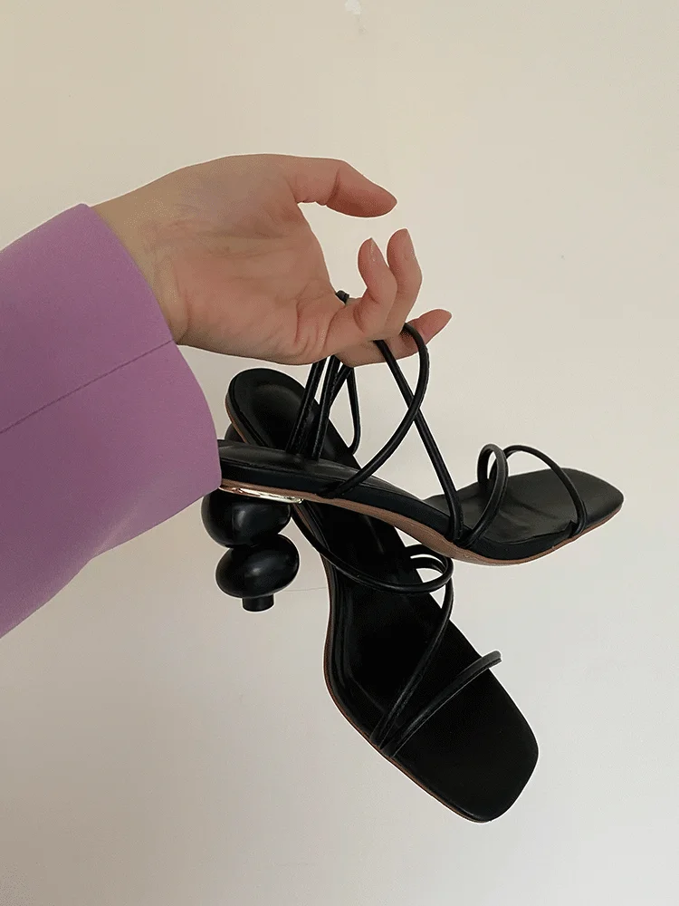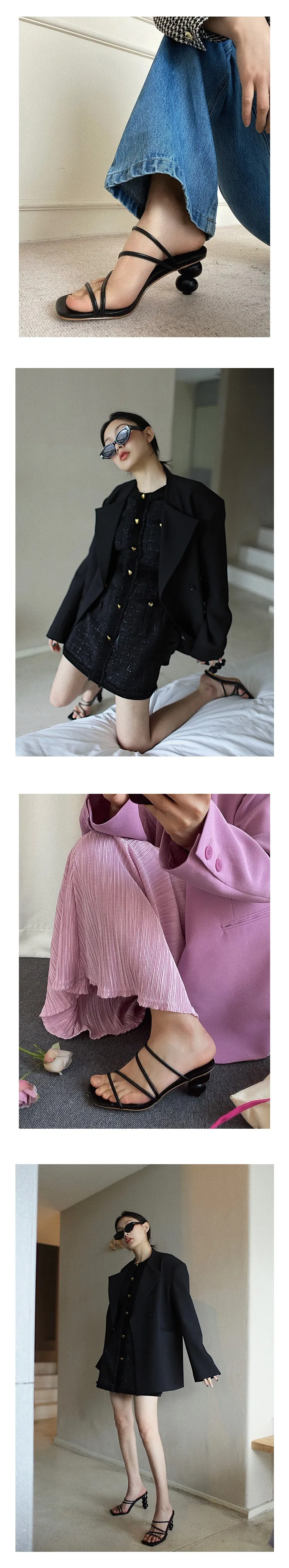 Ball Shape Heels Square Toe Slim Straps Slingback Sandals Hollow Slip-On High Heels Women's Summer Footwear