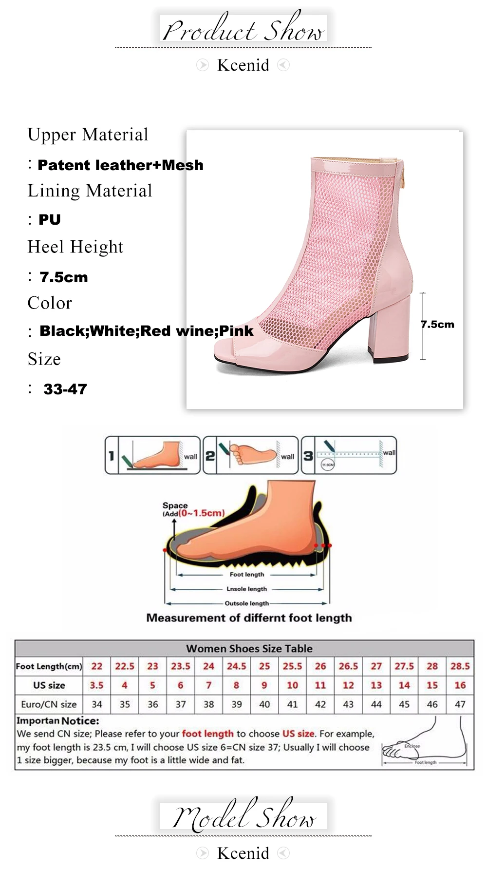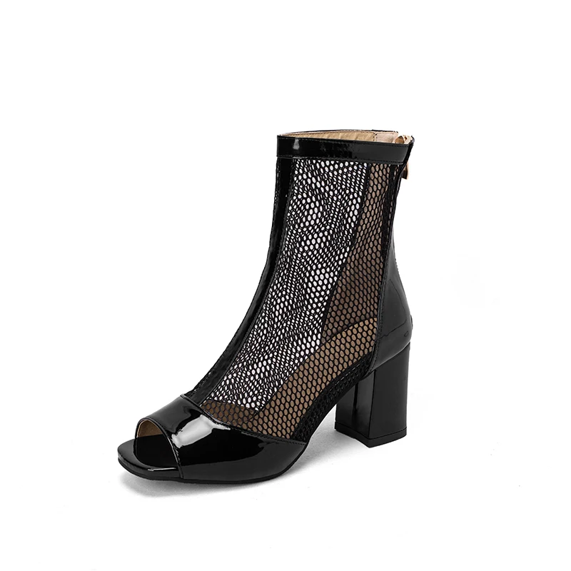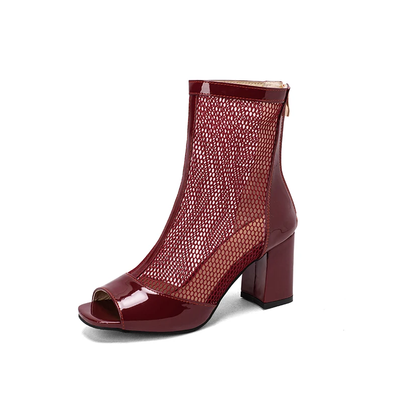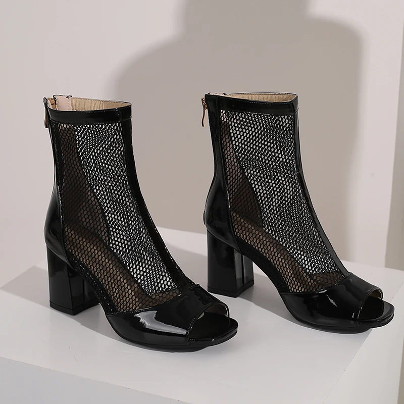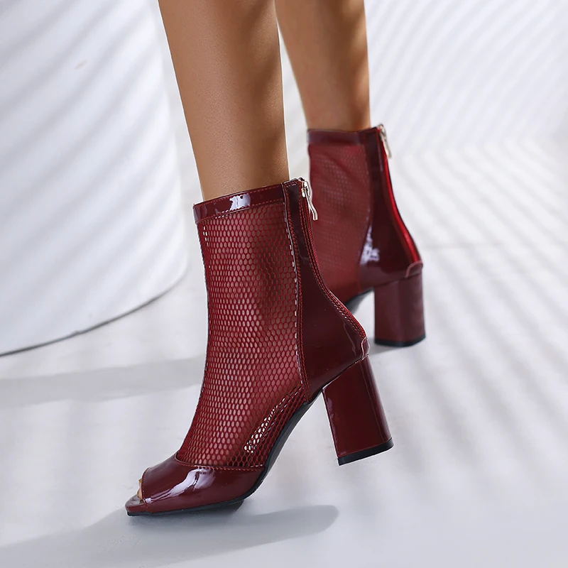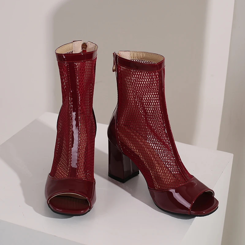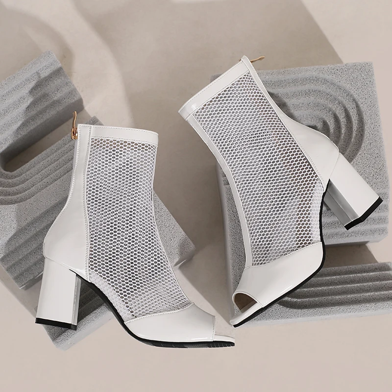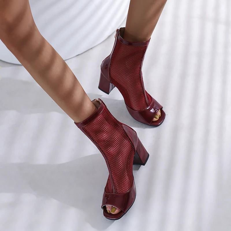 Kcenid New Spring Summer Boots Ladies Peep Toe Chunky High Heel Shoes Zipper Fashion Mesh Comfortable Ankle Boots Plus Size 43