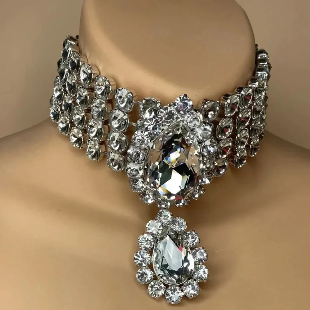 Rhinestone Multilayered Large Water Drop Dangle Necklace for Women Exaggerated Party Queen Necklace Jewelry Accessories Gifts